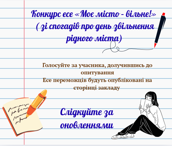 Розпочався наш конкурс есе «Моє місто – вільне!» ( зі спогадів про день звільнення рідного міста)