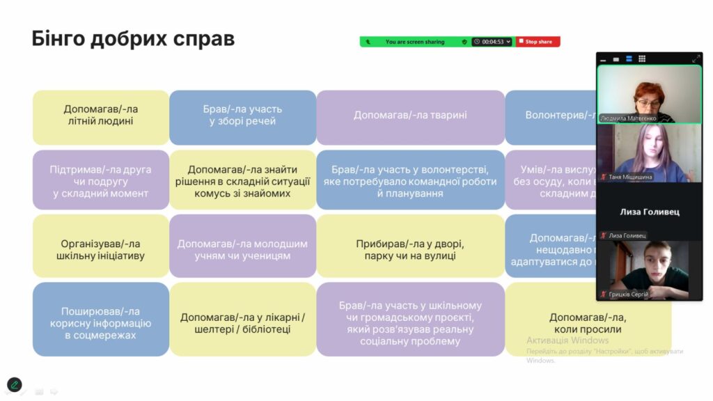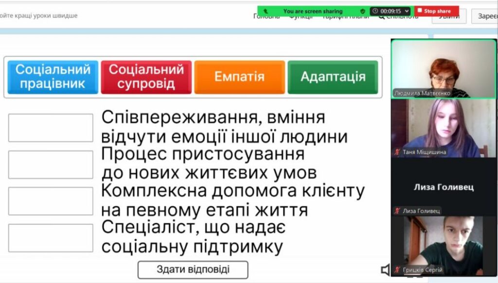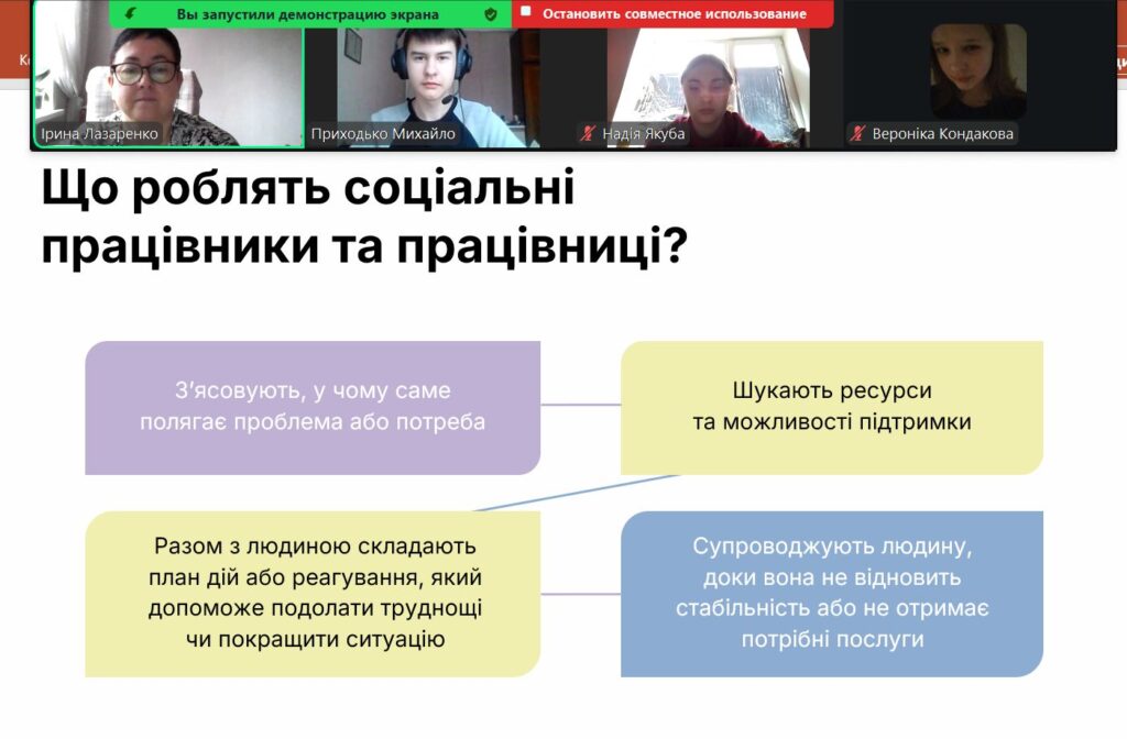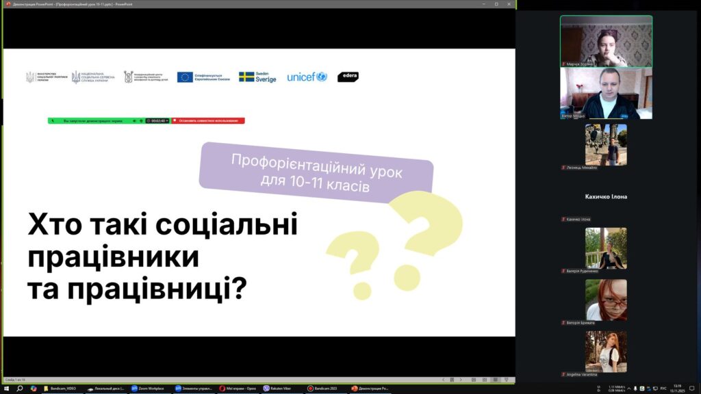 13 листопада в рамках реалізації інформаційно-просвітницької кампанії про соціальні послуги та соціальну роботу, класними керівниками 10-11 класів проведено профорієнтаційний урок «Хто такі соціальні працівники та працівниці?» , метою якого є популяризація професії соціального працівника, формування інтересу серед учнів до спеціальності «Соціальна робота», а також посилення суспільного розуміння важливості ролі соціальних фахівців у розвитку послуг, що допомагають дітям зростати в сімейному оточенні. Учні переглянули тематичне відео, виконали вправу “Бінго добрих справ” та “інтерактивний квіз”, дізналися, чому це справді затребувана професія з великими можливостями.