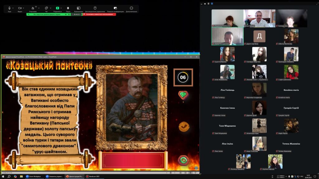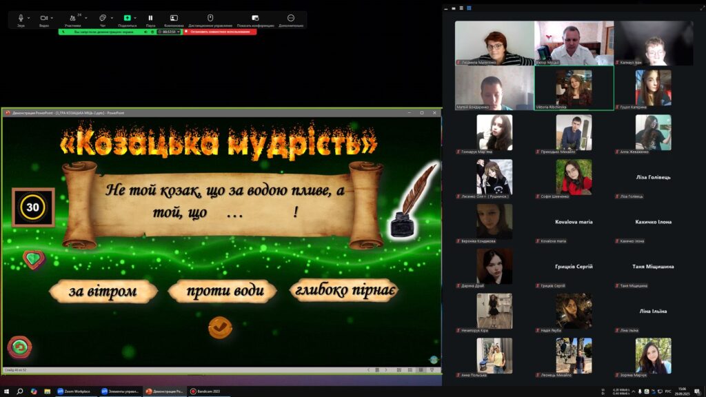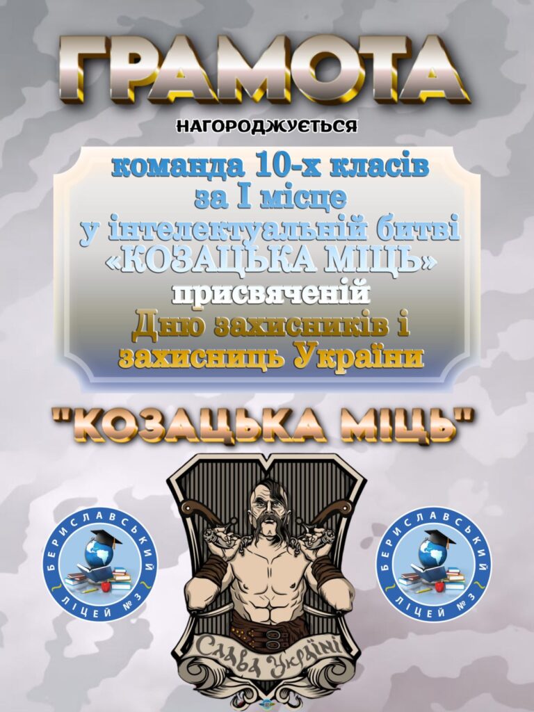 З нагоди Дня українського козацтва вчитель предмету Захист України Моцьо В.М. та педагог-організатор Кардашова О.Г. провели інтелектуальну битву “Козацька міць” для учнів 10-11 класів.Змагання проходило у дружній та патрі отичній атмосфері, учасники продемонстрували чудові знання історії та традицій українського козацтва. За підсумками гри перемогла… дружба – адже результат виявився нічиїм!