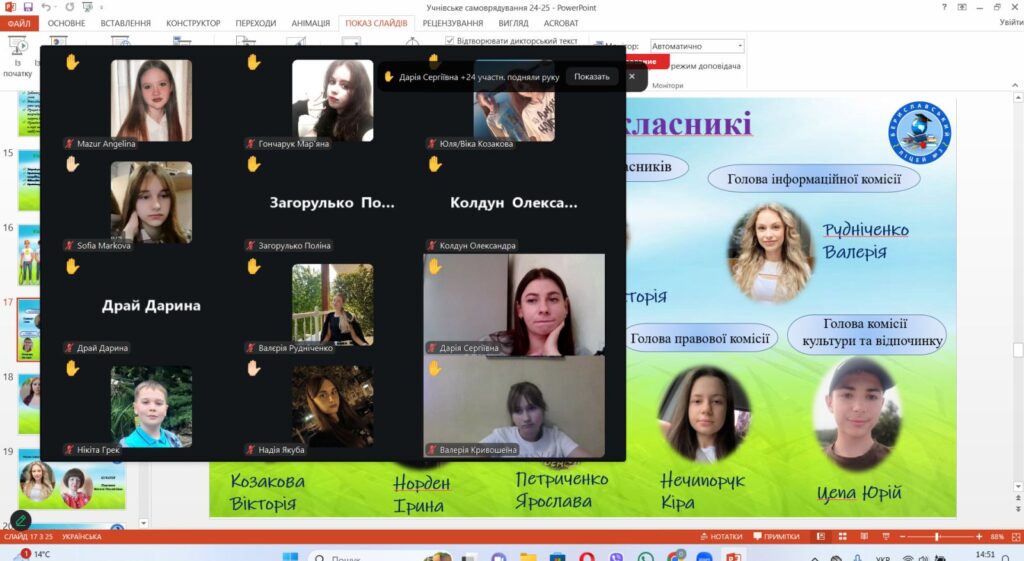 Під гаслом «Ми – єдина команда» відбулося І засідання дитячо-юнацької організації «Молодіжний центр». Розглянули структуру Ради старшокласників, функції, основні принципи. Учні 6-11 класів ухвалили кандидатів Ради старшокласників до комісій, а також план роботи на І семестр: