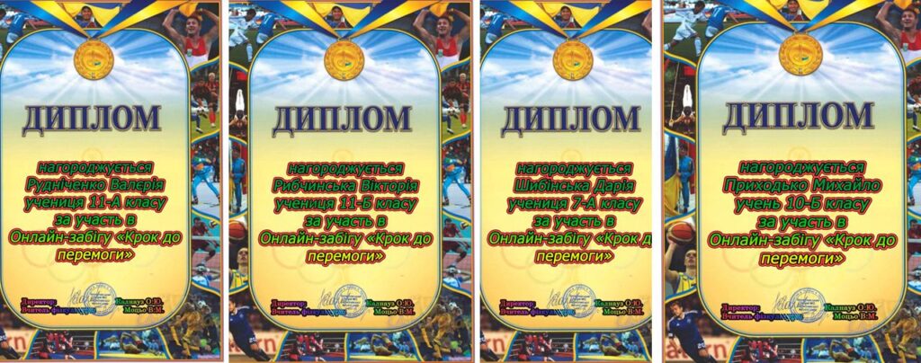 Вітаємо Малашкову Дар’ю,ученицю 8-А класу з перемогою у онлайн-забігу «Крок до перемоги» . Дякуємо всім учням та вчителям за участь.