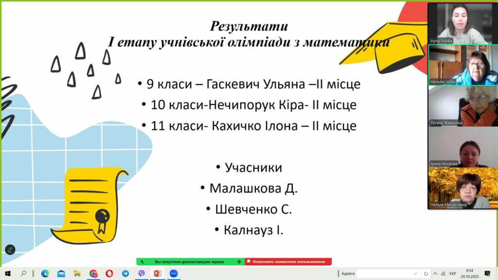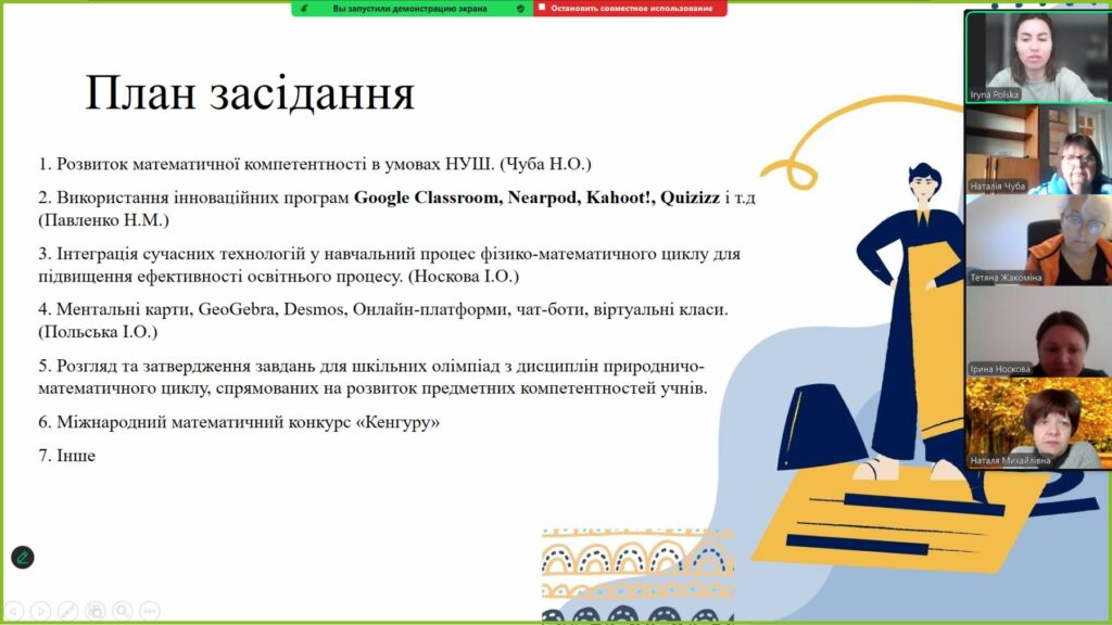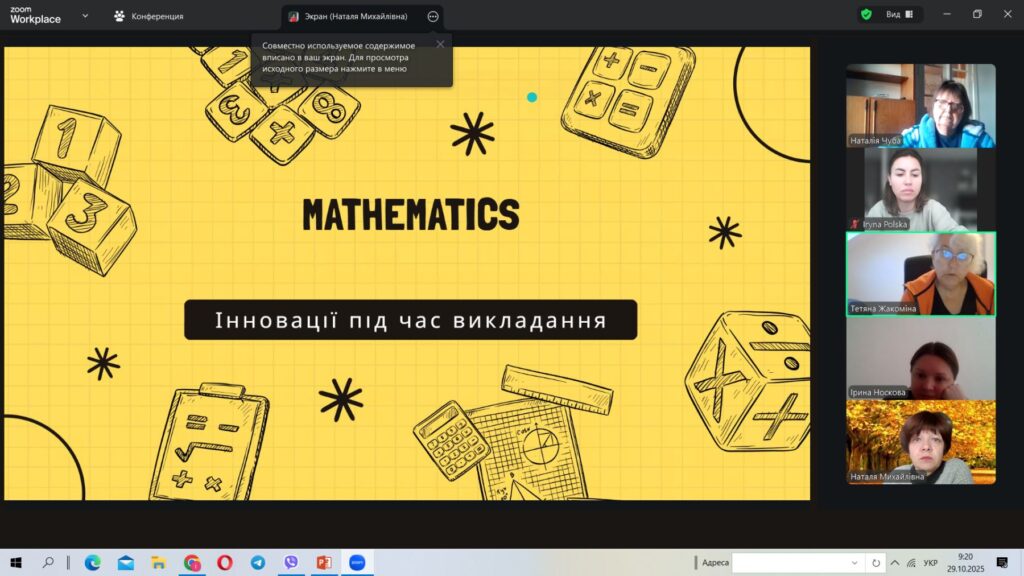29 жовтня вчителі математики, фізики та інформатики зібрались на засіданні МО для обговорення теми «Сучасні освітні технології та математична грамотність». Засідання пройшло в формі круглого столу, де кожен міг ознайомити з сучасними освітніми технологіями, що сприяють розвитку математичної грамотності та обмінятись досвідом щодо впровадження інноваційних методів навчання. Досвід кожного сприяв підвищенню професійної компетентності педагогів.